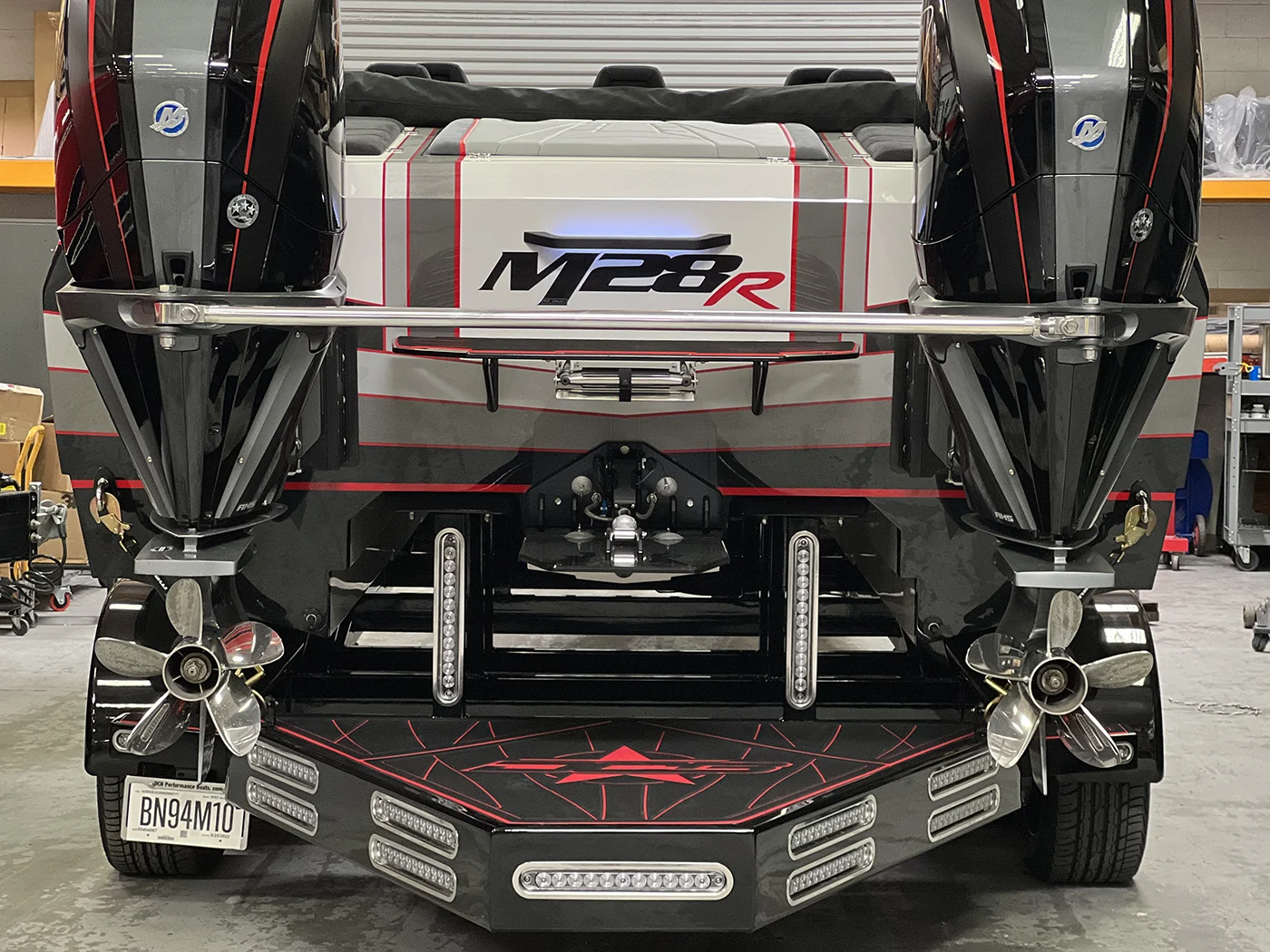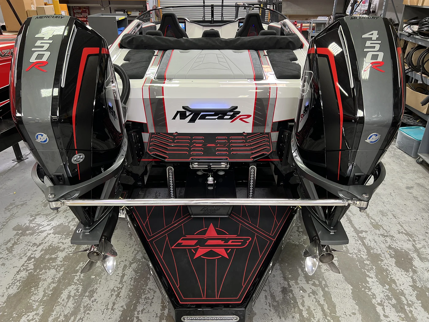 Powered exclusively by Mercury Racing outboards, the M28R can be equipped with your choice of twin 300R, 400R, or the supercharged 500R engines—delivering explosive acceleration, razor-sharp handling, and the kind of top-end speed that defines DCB performance. Whether carving up glassy lakes or running wide open across big water, the M28 delivers a pure, visceral driving experience every time you push the throttles forward.