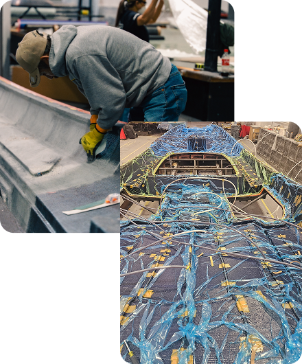 PerformaLam features our exclusive Vacuum Infused Resin (VIR) technology combined with a high-performance blend of bi-axial E-glass, Kevlar, high-density balsa, and other proprietary materials. This process ensures consistent resin saturation and complete air removal, resulting in a strong, rigid, and precisely engineered hull.