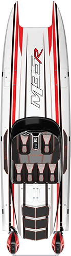 Power comes from twin Mercury Racing outboards, available in 300R, 400R, or supercharged 500R configurations. While each setup offers thrilling performance, DCB’s preferred configuration is the Mercury Racing 400R—a naturally aspirated, large-displacement V10 that runs on minimum 87 octane and offers the perfect balance of power, efficiency, and reliability. With its deep, unmistakable tone and commanding presence, the twin 400R’s deliver a go-anywhere, run-all-day experience.